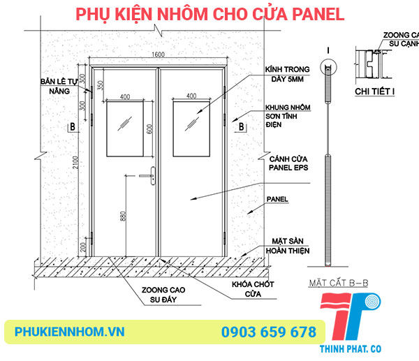 - Khung bao kính: cấu tạo từ vật liệu nhôm cao cấp, dùng để gắn các ô kính trên cửa Panel